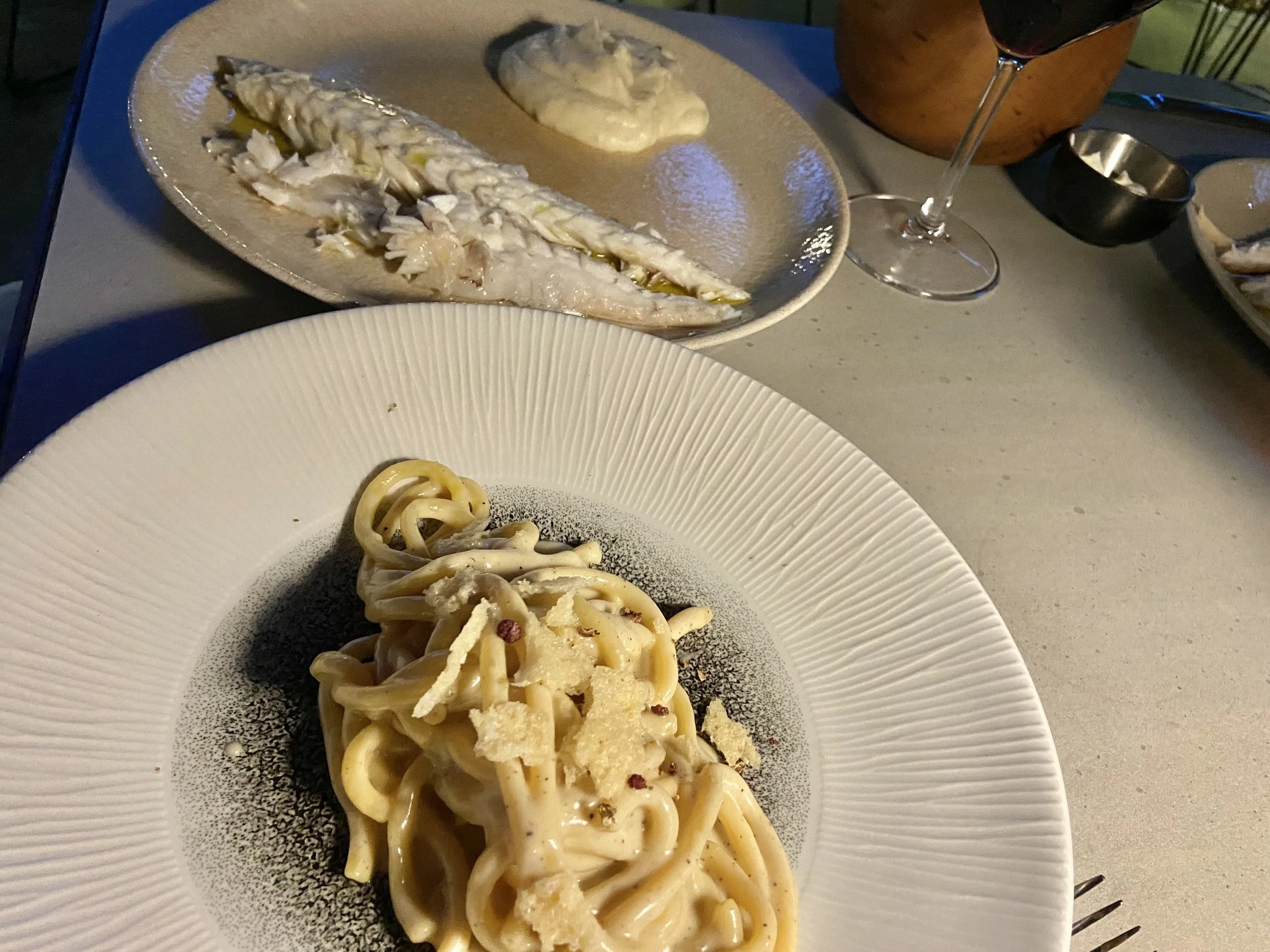 Ghost Score 9.2 : I ate on the patio. Vibrant open kitchen. Caprese Burrata. Tagliolini with Black Truffle,French Butter, & Parmesan Cheese. Whole Branzino. Red Wine. Superb all around.
